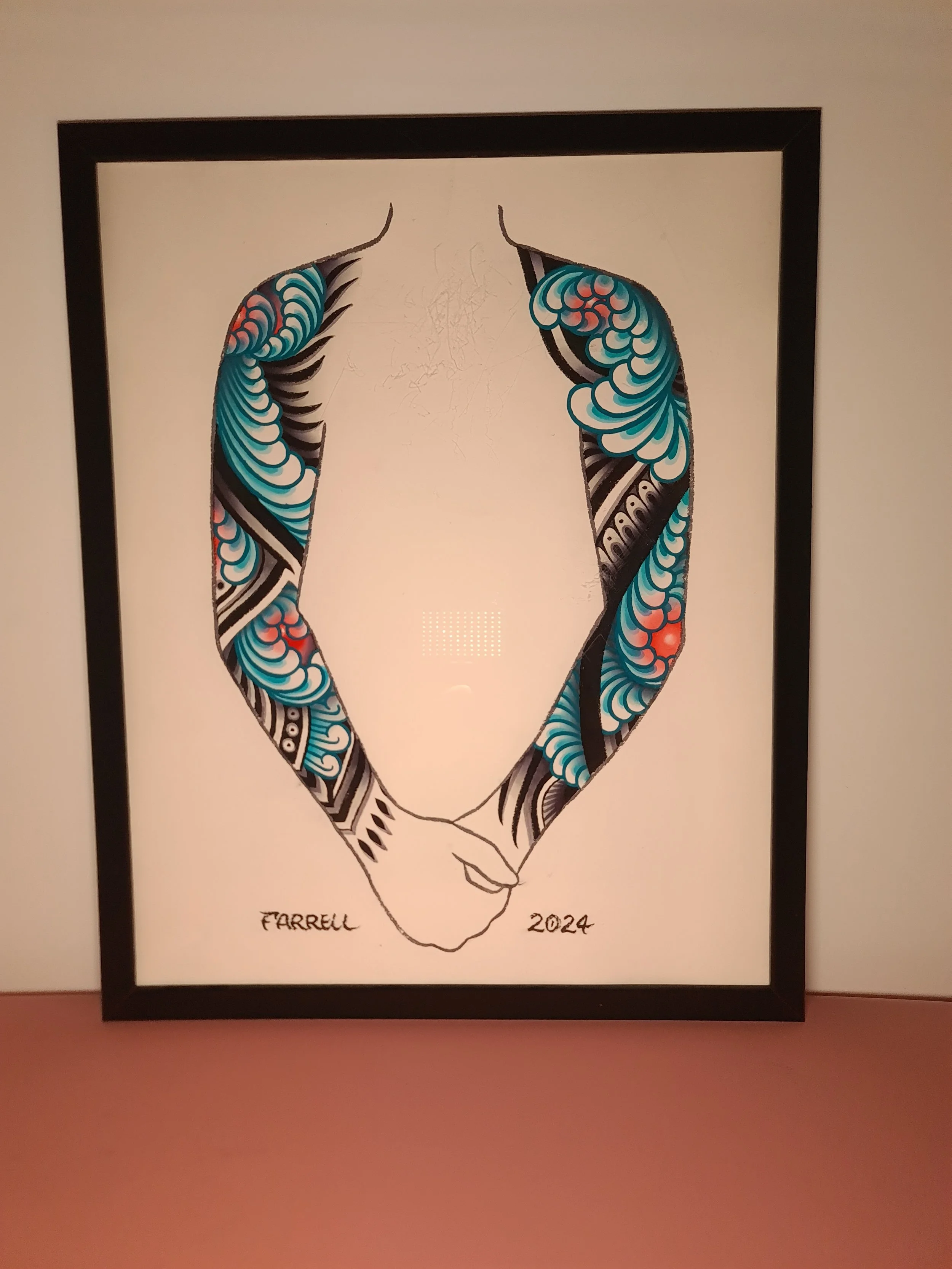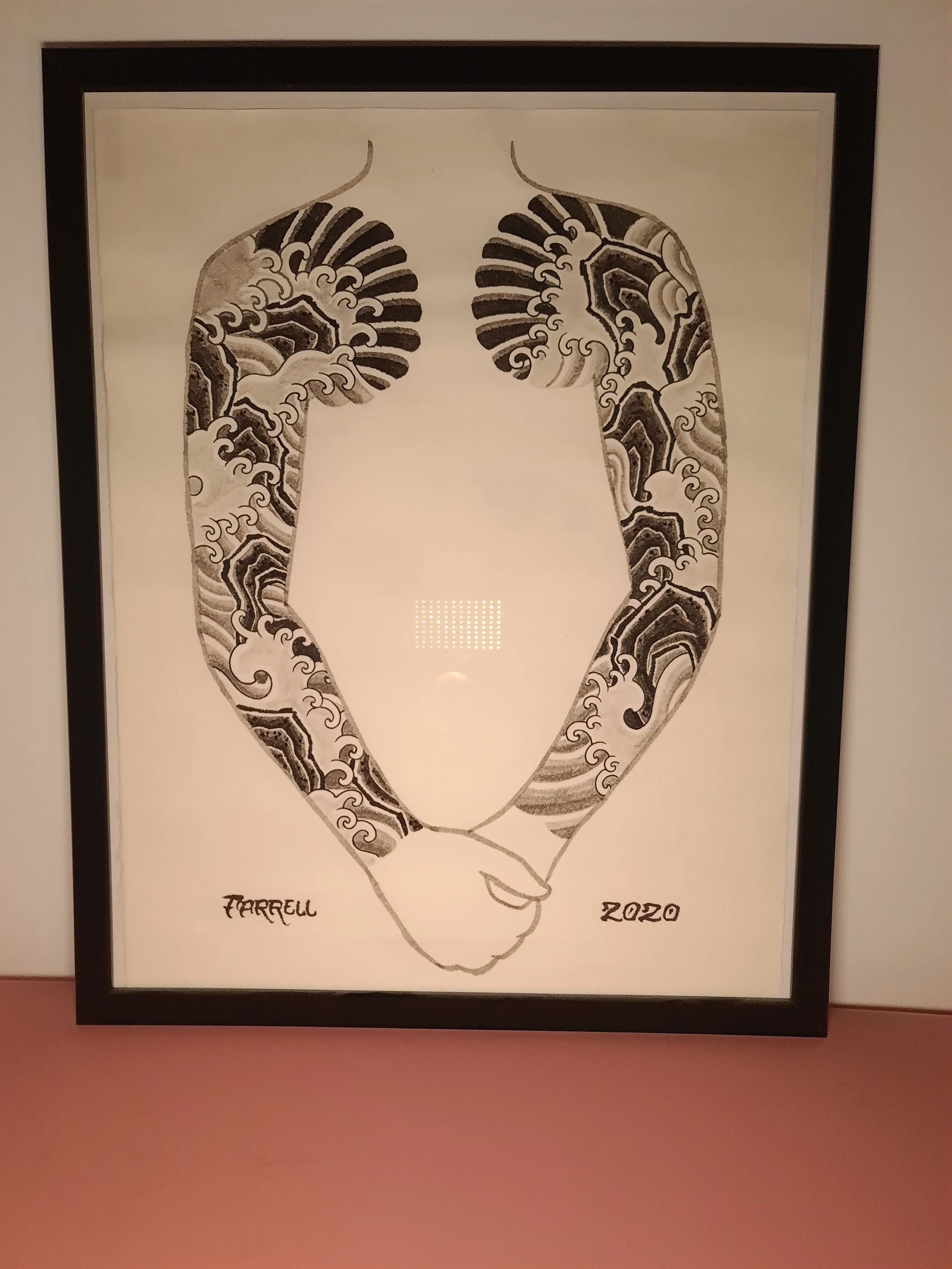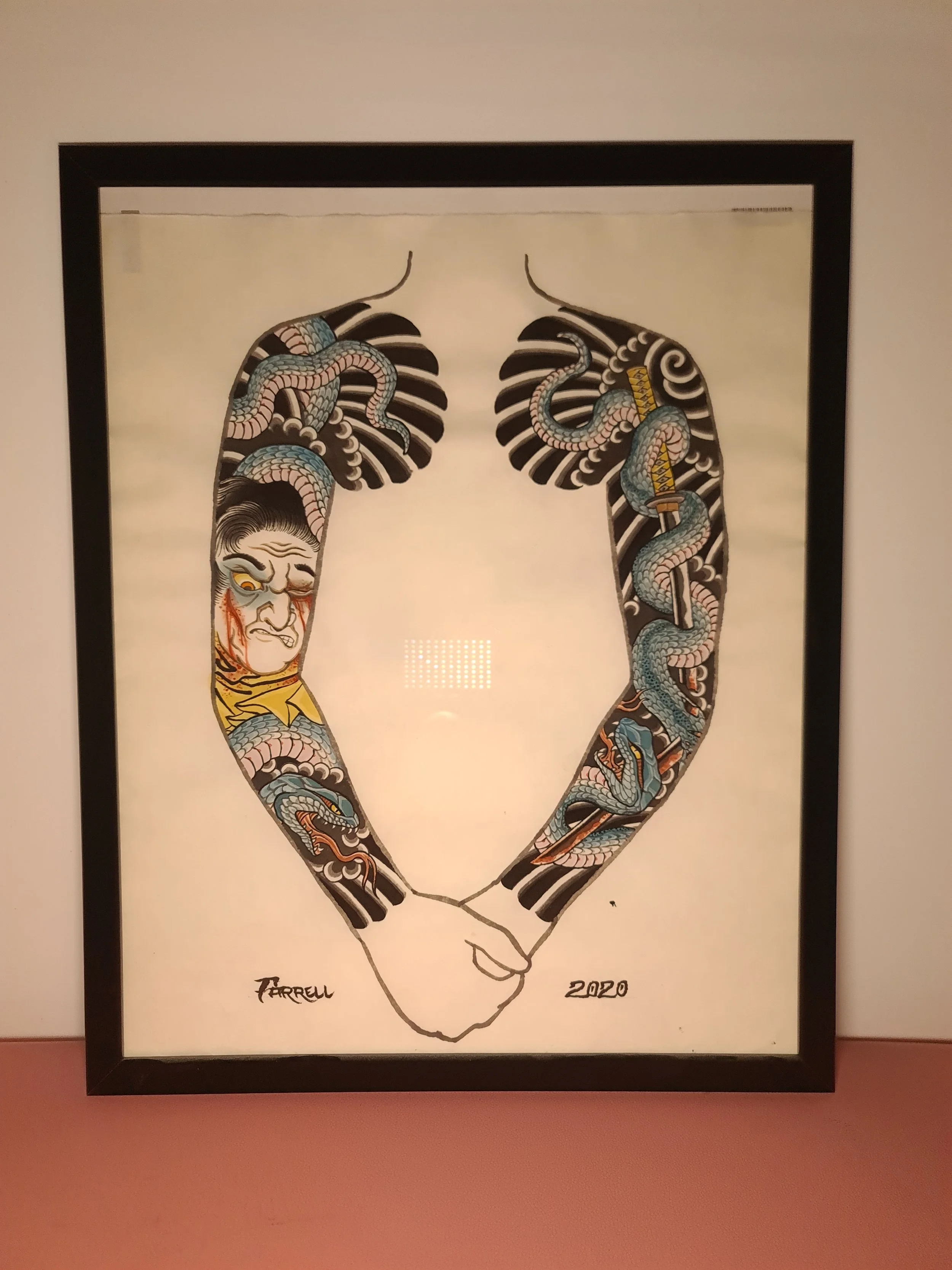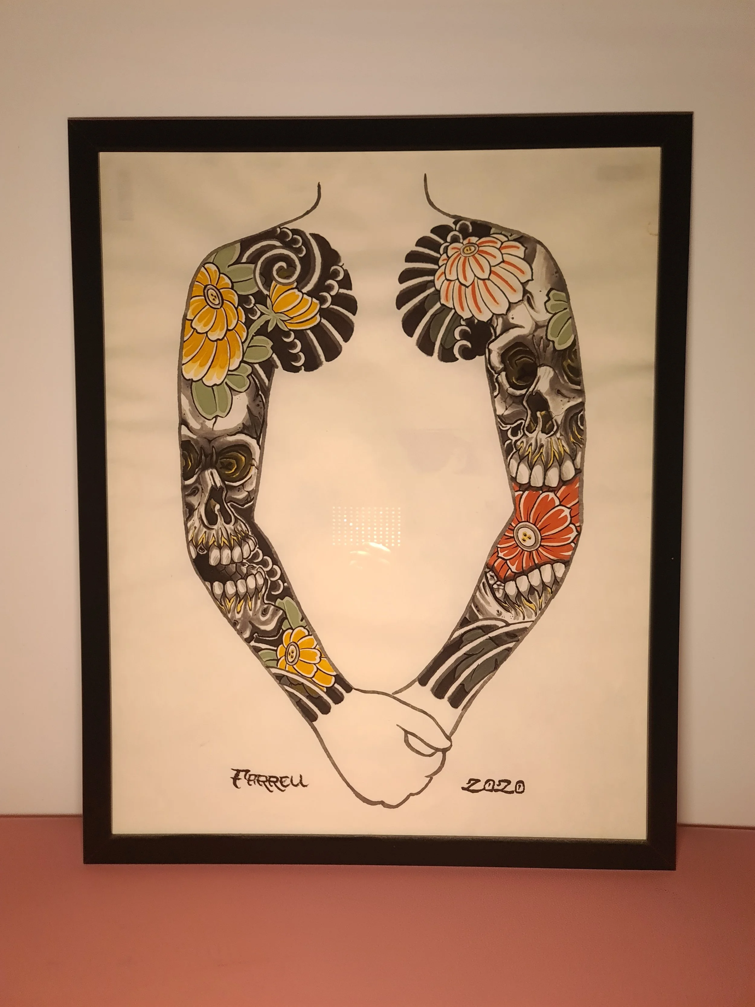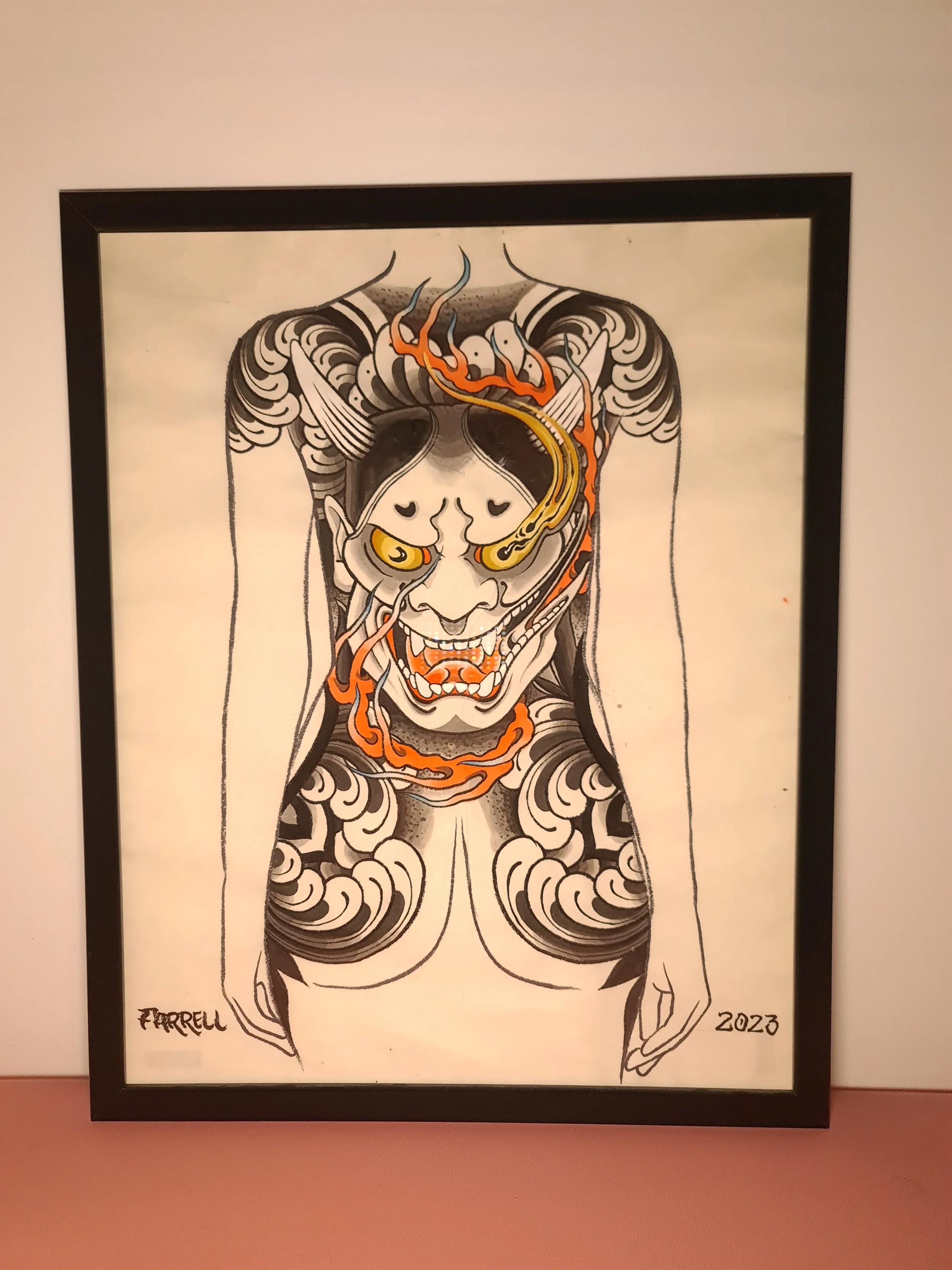 Award‑winning tattooist Joe Farrell has been painting Japanese style designs for over a decade, creating a huge catalogue of designs ready to be tattooed. Since 2020 he has painted sleeve and back piece designs to help clients visualise how designs would fit on their bodies. Here are some of the hand painted designs, with motifs such as koi, dragons, skulls and chrysanthemums among others.