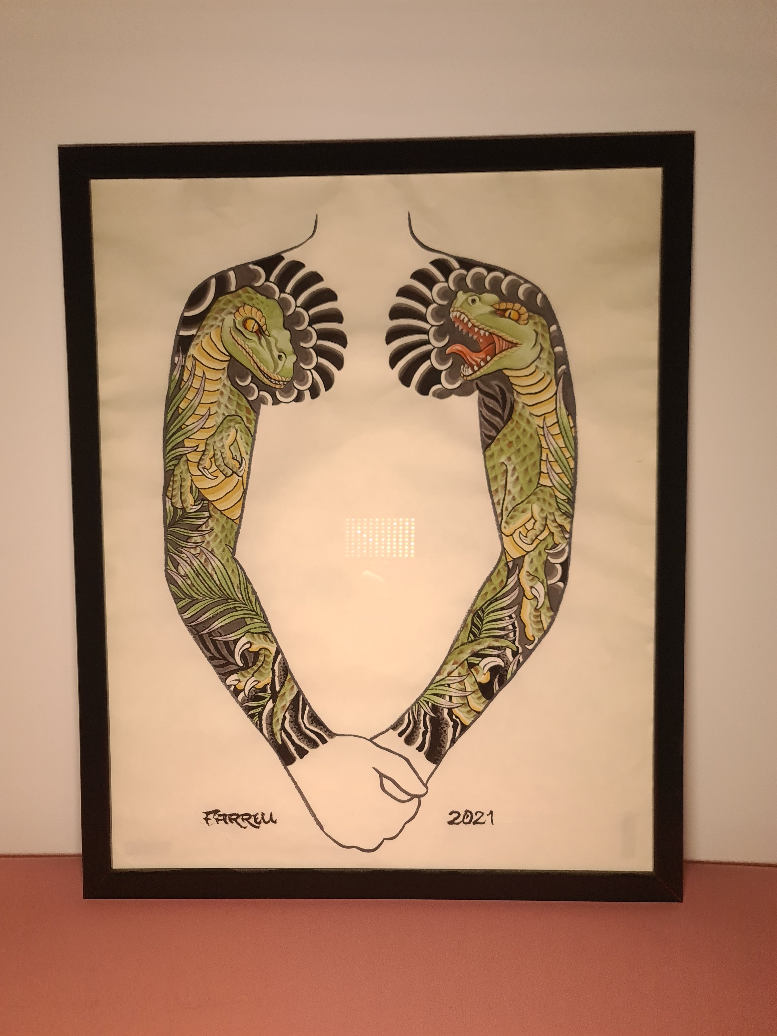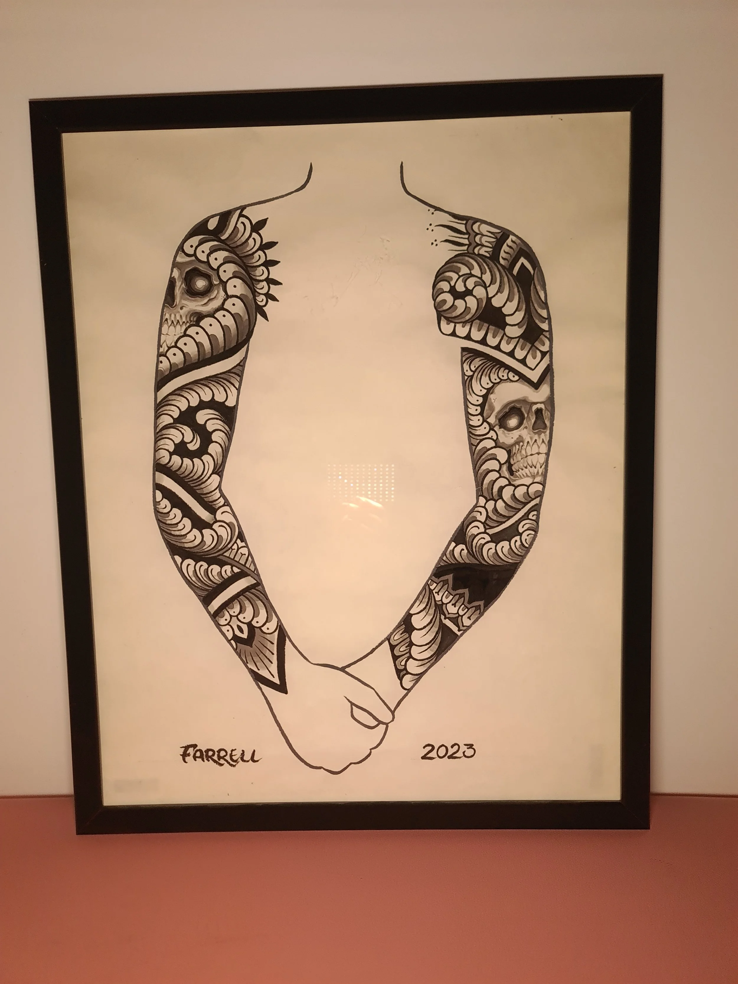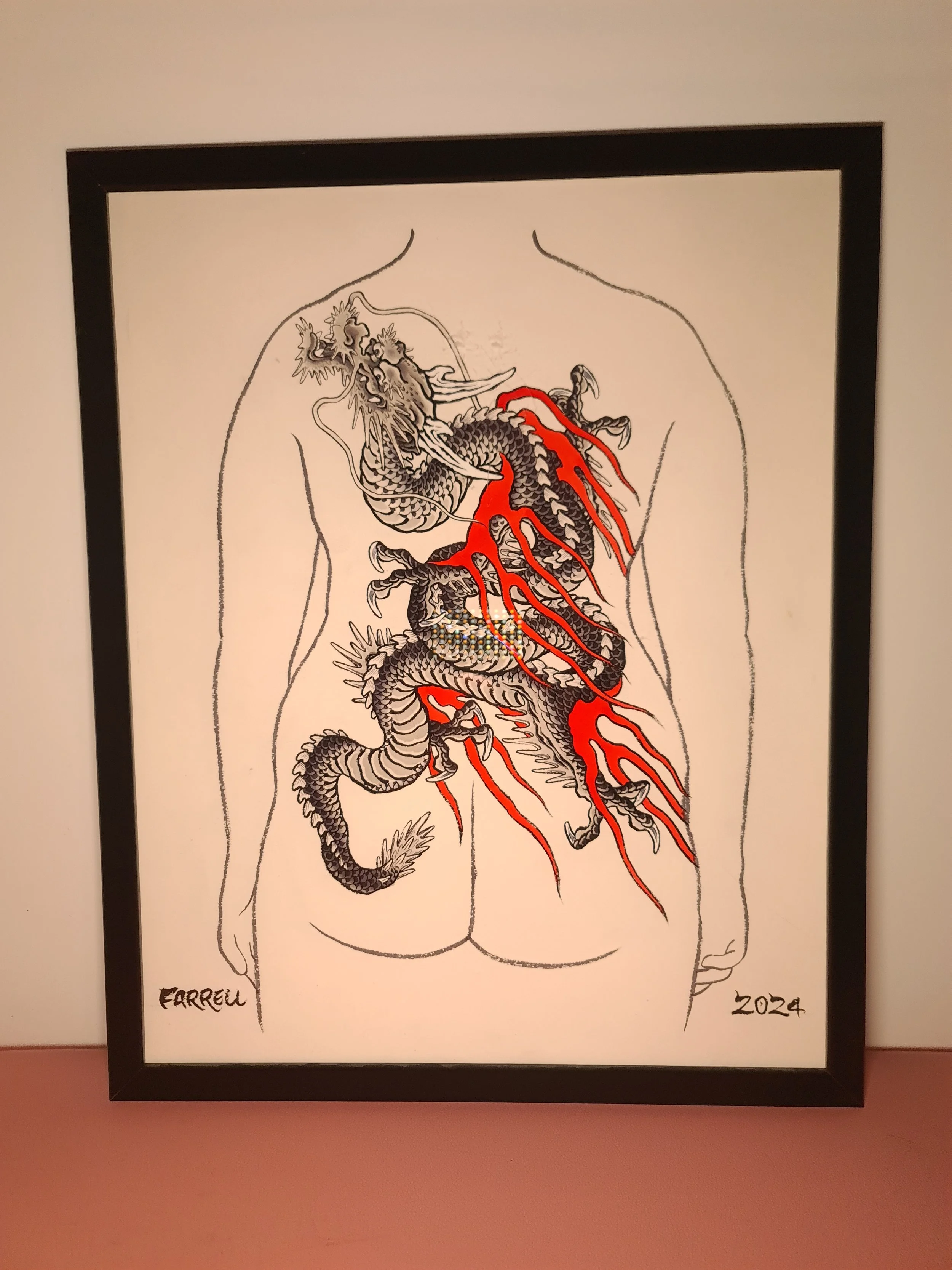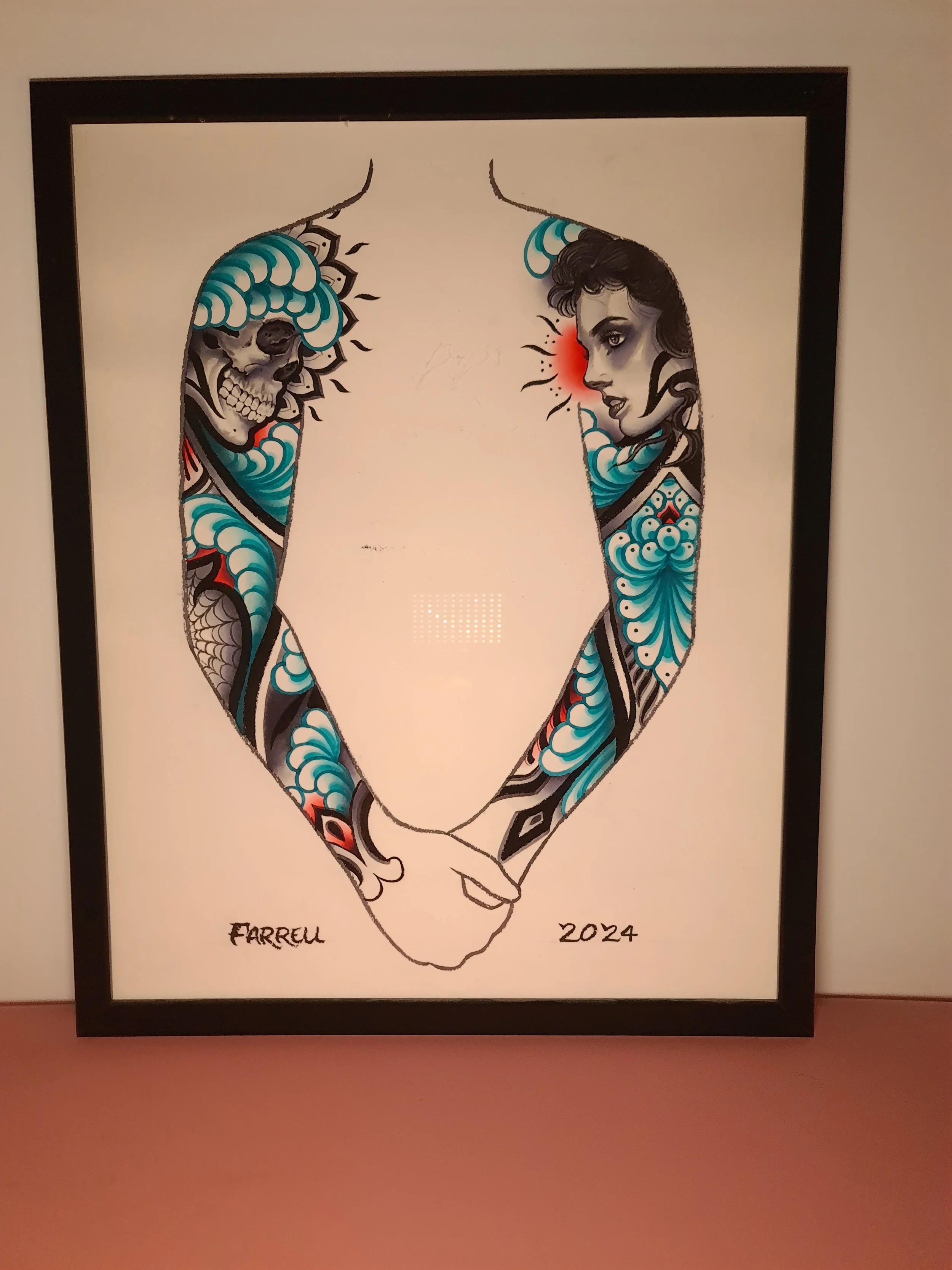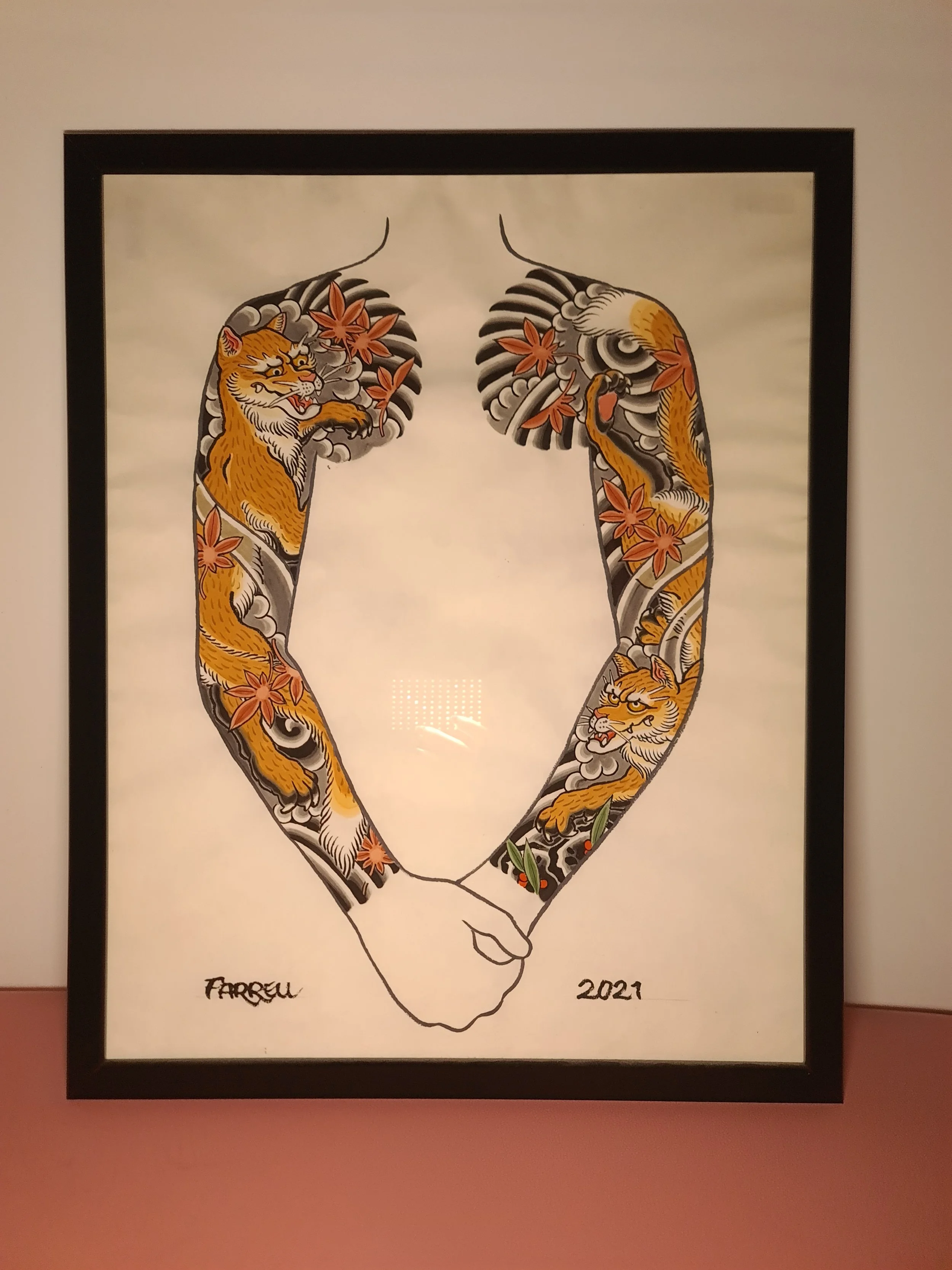 Award‑winning tattooist Joe Farrell has been painting Japanese style designs for over a decade, creating a huge catalogue of designs ready to be tattooed. Since 2020 he has painted sleeve and back piece designs to help clients visualise how designs would fit on their bodies. Here are some of the hand painted designs, with motifs such as koi, dragons, skulls and chrysanthemums among others.